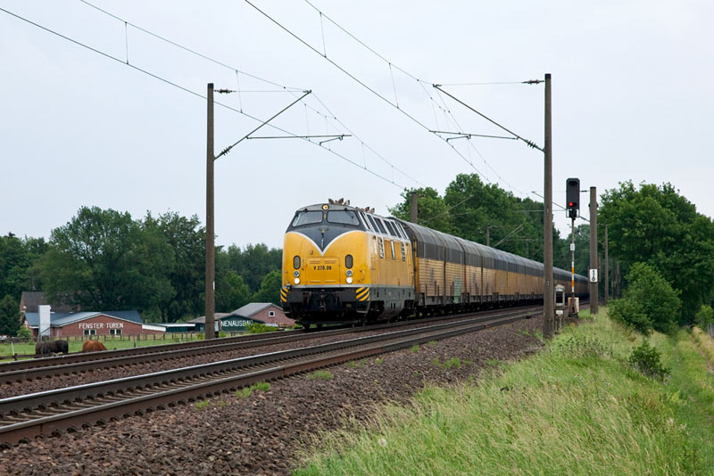 Die V270.06 der Eisenbahngesellschaft Potsdam mit einem ARS Altmann-Autologistikzug von Cuxhaven!