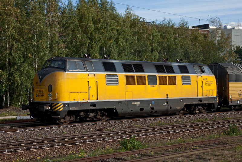 Einen Autologistikzug der ARS ALTMANN-Gruppe brachte V200 der EGP, die 221 106-8 nach Cuxhaven.