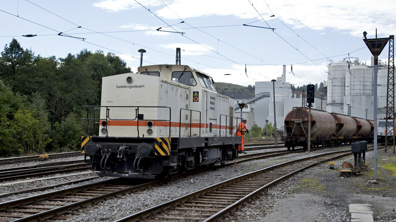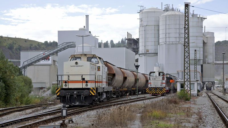 Die Loks D.07 und D.05 beim verschieben der Staubgutwagen.
