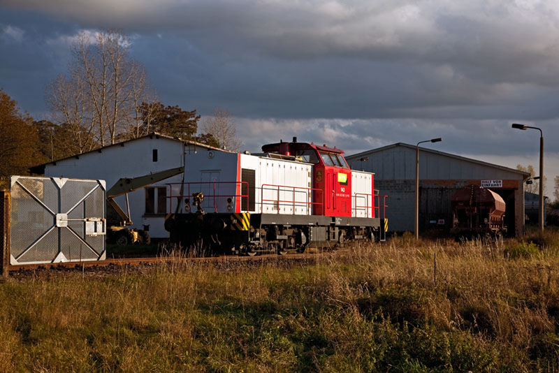 Die 202 960 der Hörseltalbahn im Werk des ortansässigen Kieslieferanten.