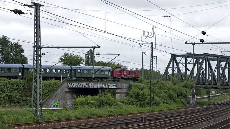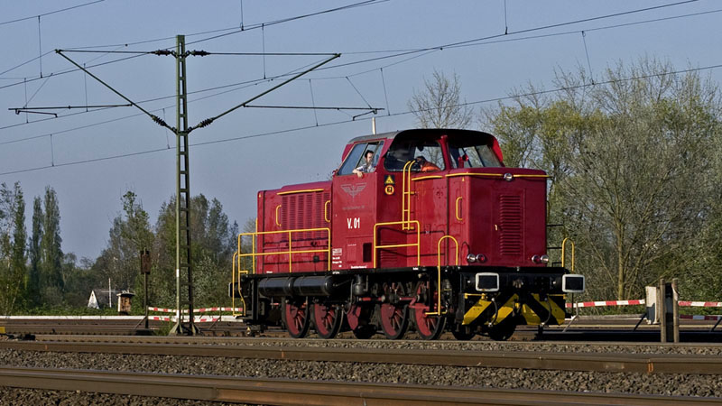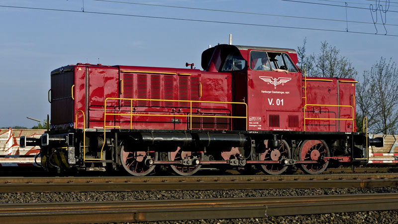 Die V01 der Hamburg Eisenbahn GmbH kurbelte mit einem Sonderzug von der Peute!