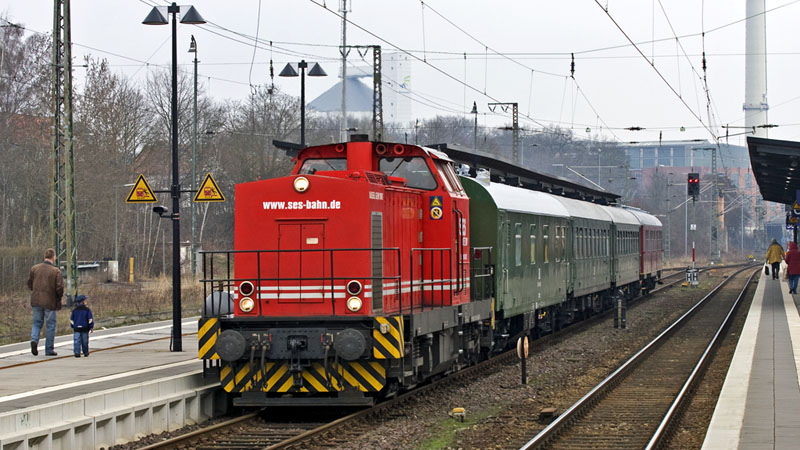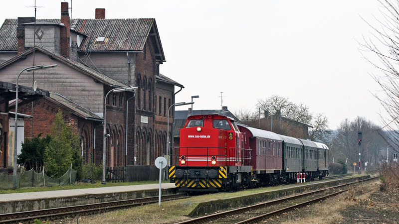 Der Sonderzug der Salzwedeler Eisenbahnfreunde mit der Diesellok (die 52er ist ausgefallen) 293 005-5.