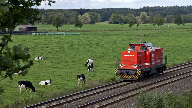 Die 293 005-5 der Süderwischer Eisenbahn-Service konnte die Kühe nicht erschrecken.