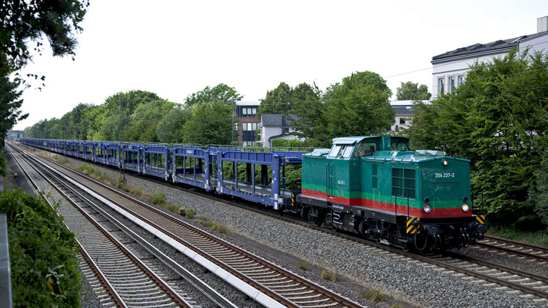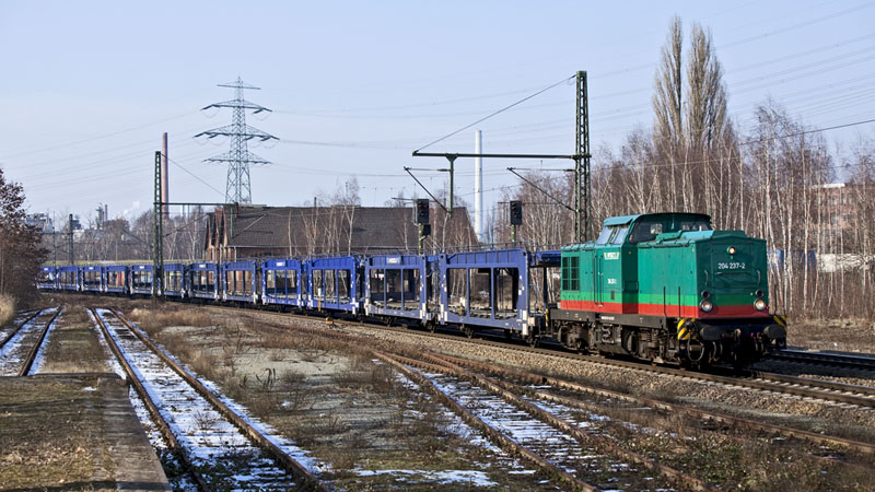 Von Cuxhaven kam dieser interessante MOSOLF-Autologistikleerzug mit der 204 237-2 der WSET!