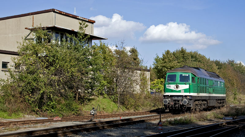 Wenig später rollte die V300 002 am Stellwerk des Werkbahnhofes vorbei.