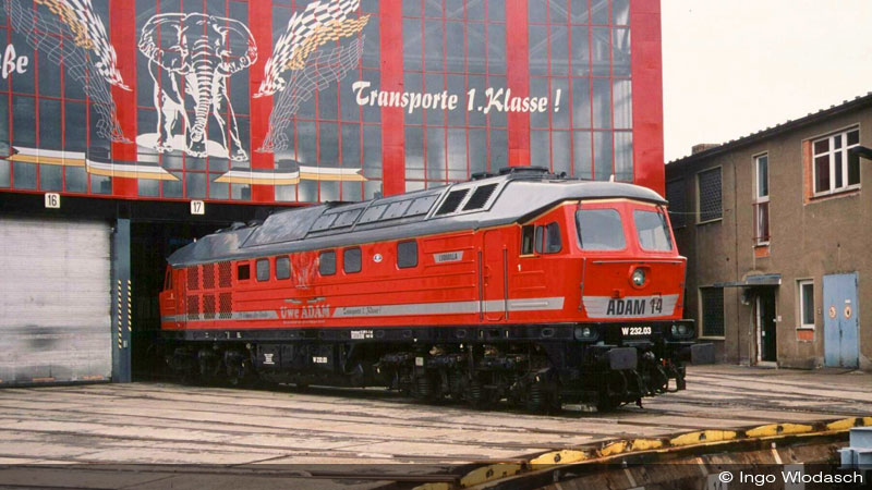 Ludmilla ADAM 14 alias W 232.03 vor dem Lokschuppen an der Drehscheibe.