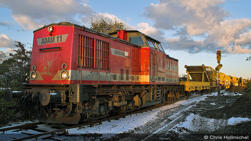 11 "Christina", eine ehemalige V100 Ost (ex. DR 202 597), im Bauzugeinsatz