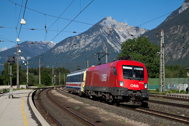 | Einen InterCity nach Innsbruck führte die 1016 040. Vomp (Inntal), 19. Mai 2011 |