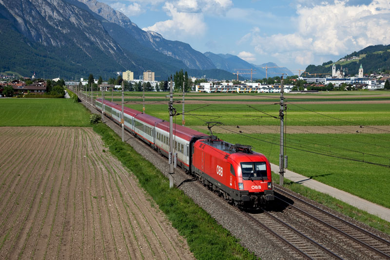 | Die 1016 015 mit ihrem InterCity nach Innsbruck. Brixlegg, 18. Mai 2011 |