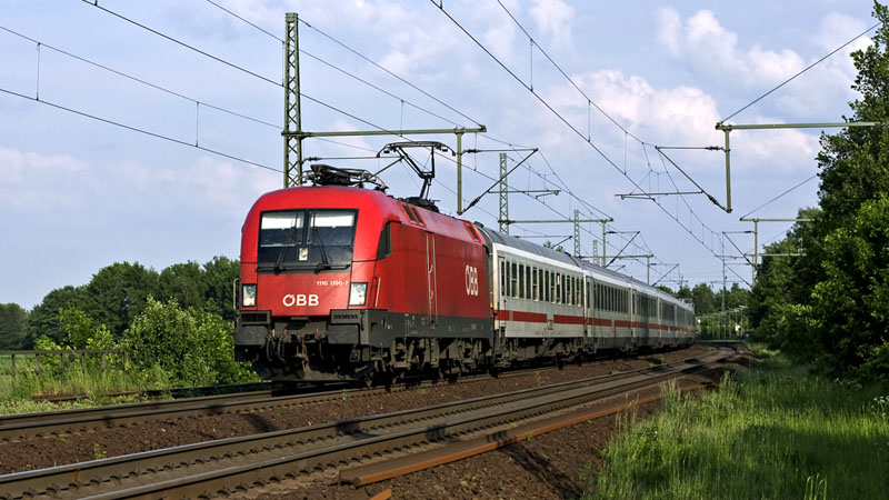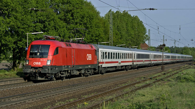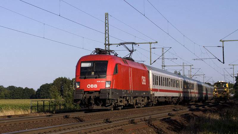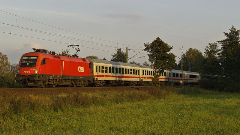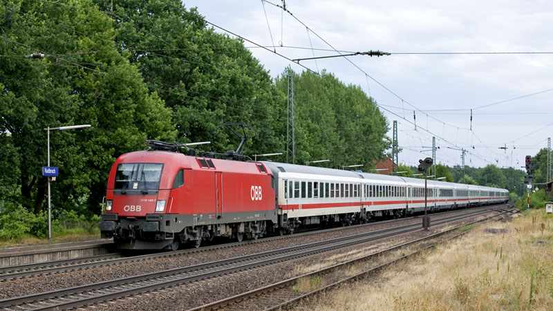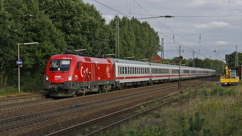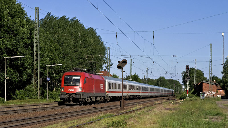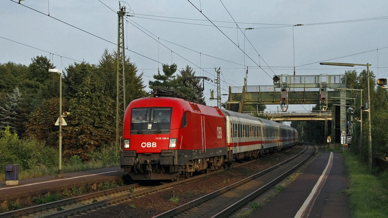 Der bekannte InterCity 2083 "Königssee" mit der 1116 135-3 der Österreichischen Bundesbahnen. Hamburg-Meckelfeld, 29. Juni 2010 |