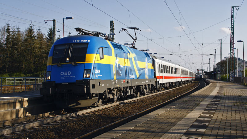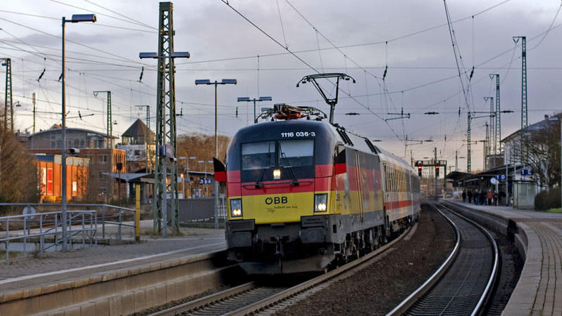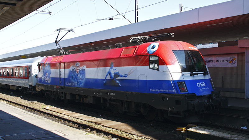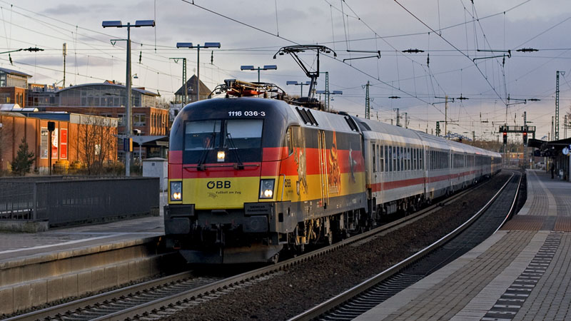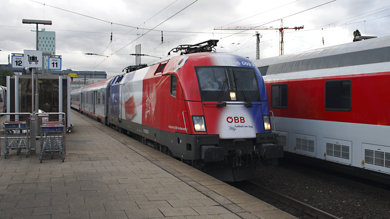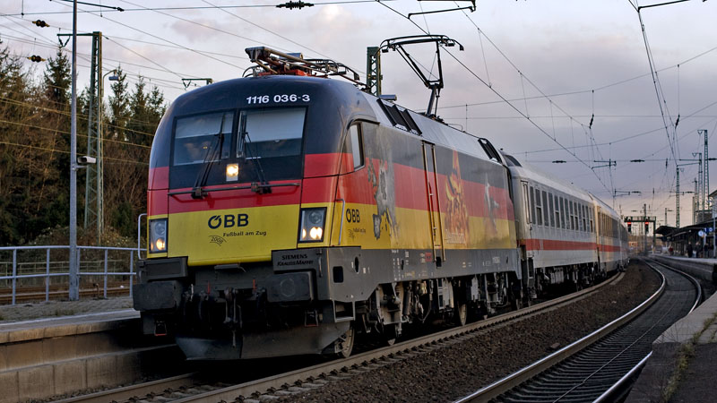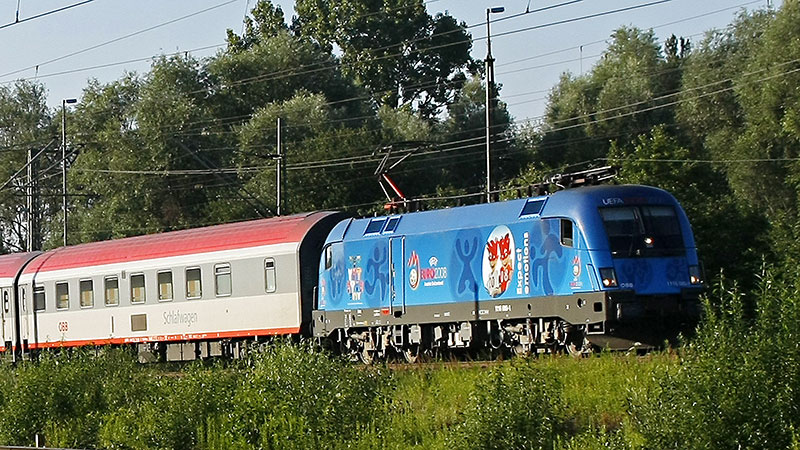 "Türke" unter den ÖBB EM-Werbeloks vor dem IC 2082