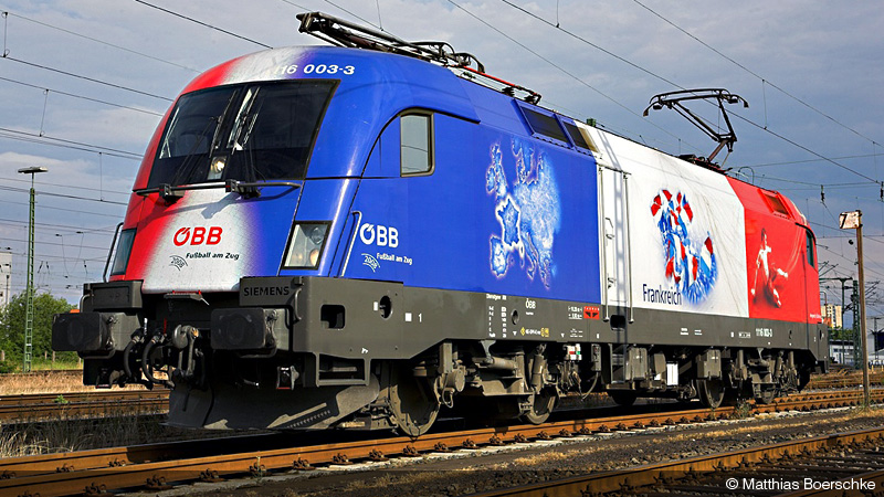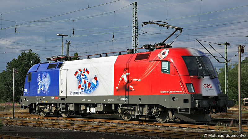 EM2008-Botschafterlok "Frankreich" in Hamburg! Die 1116 003-3 der ÖBB. Hamburg Langenfelde, 15. Juni 2008 |