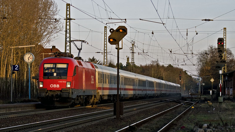 1116 116-3 der ÖBB mit dem IC 2082 Königssee nach Hamburg. Radbruch, 20. März 2009 |