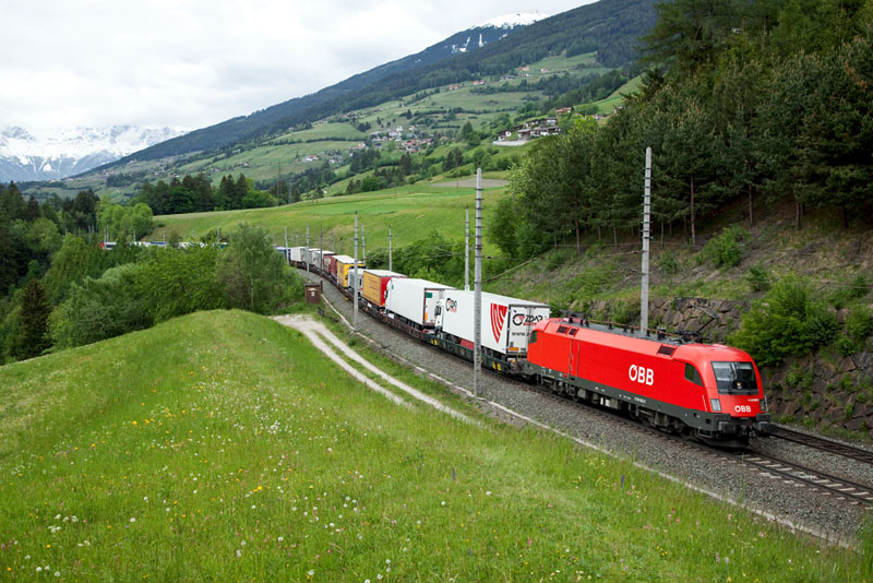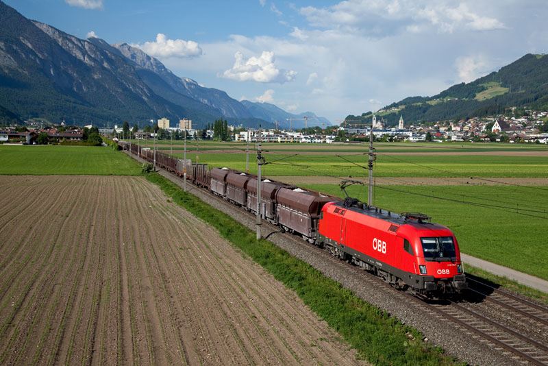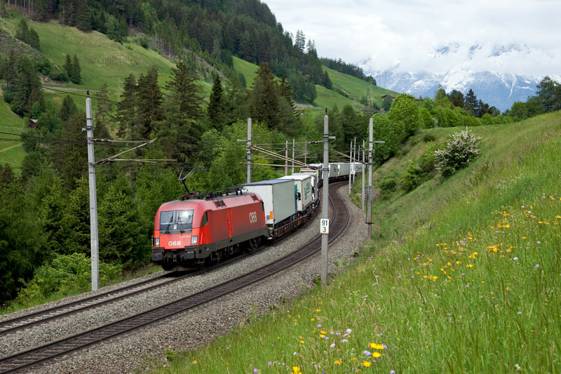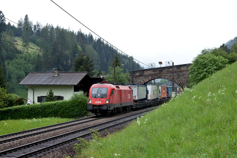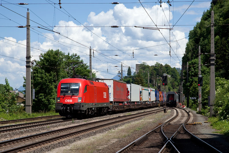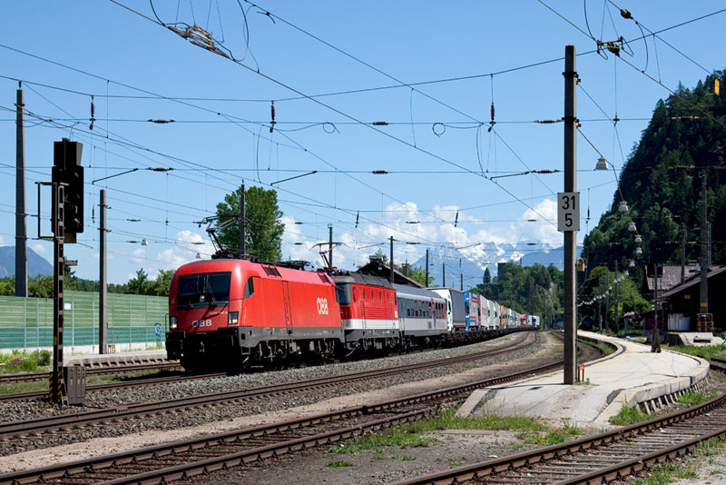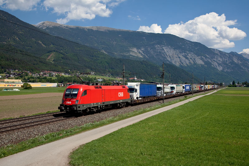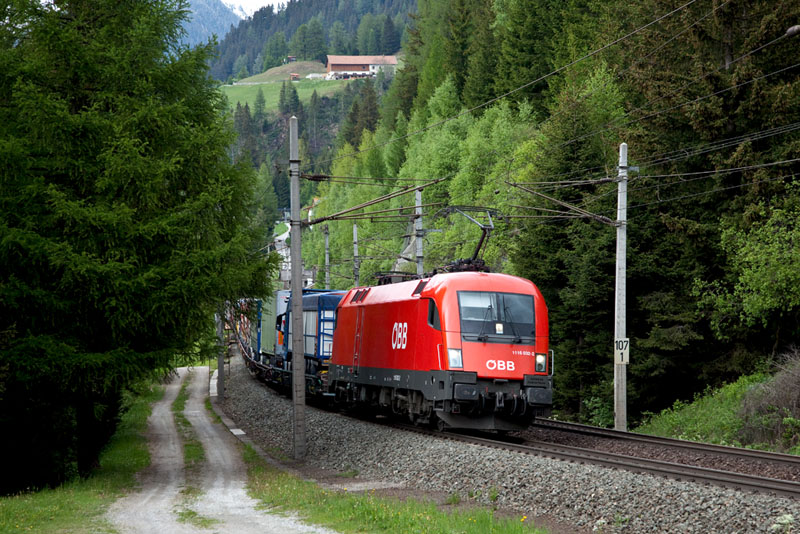 Die nächste RoLa der ÖKOMBI nach Brennero mit der 1116 032. Brixlegg, 18. Mai 2011 |