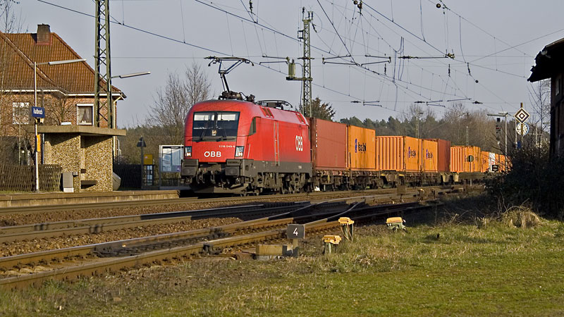 Selbst im hohen Norden sind die Alpenbahnen recht allgegenwärtig! Hier in Form der ÖBB 1116 076-9 mit einem Containerzug nach Hamburg. Radbruch, 10. März 2007 | ||