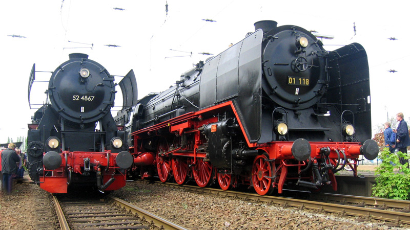 die 01 118, 52 4867 und eine preußische P8 in jeweiligen Etappen einen