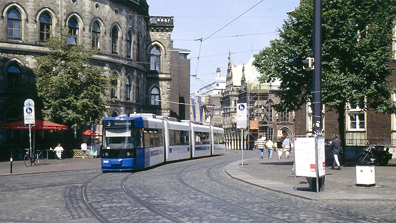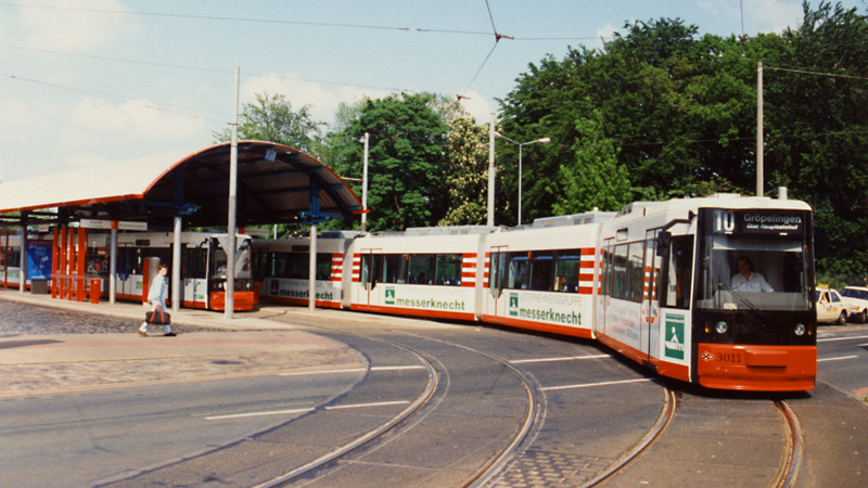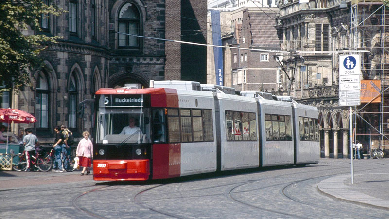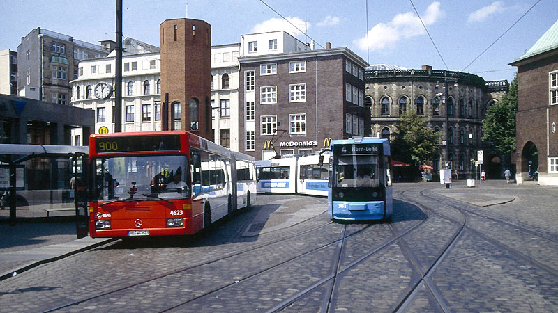 auf der Linie 3 nach Weserwehr die Kreuzung an der Domsheide. Mai 1999 |