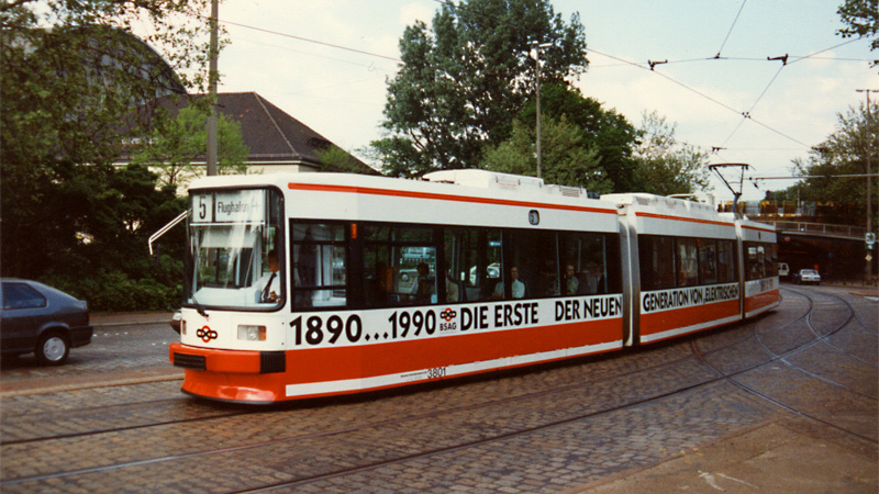 Bremer Straßenbahn. Von einem Niederflurtriebwagen gescheucht, rumpelt