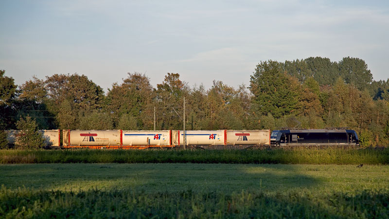 einem 2.400 Tonnen schwerem Spanplattenzug nach Dänemark sind die