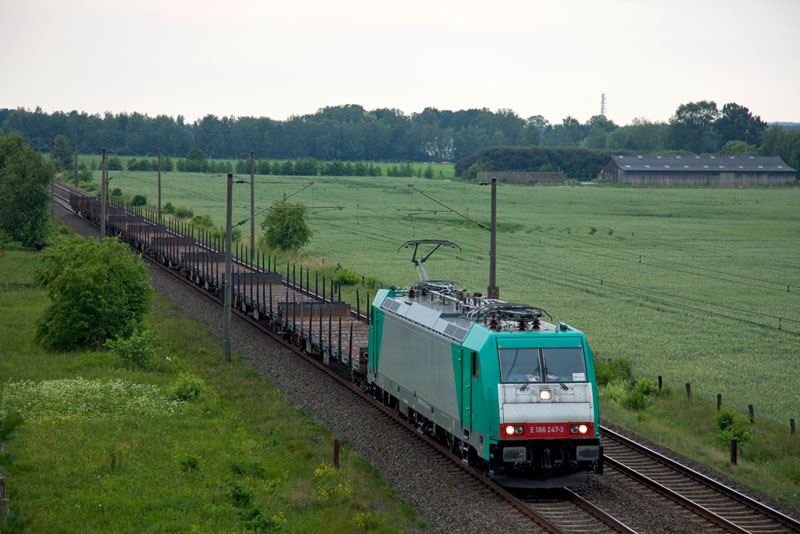 Seit einigen Tagen ist die E 186 247-3 der RBSAF im Einsatz für die CFL Cargo – hier mit einem Rungenwagenzug.
