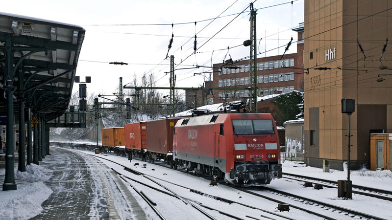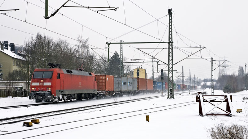 152 113-7 kommt Lz zurück vom Hamburger Hafen und passiert diese winterliche