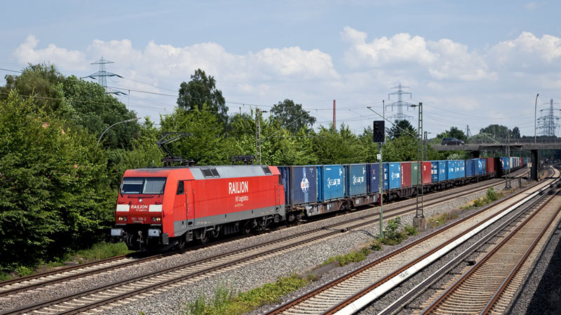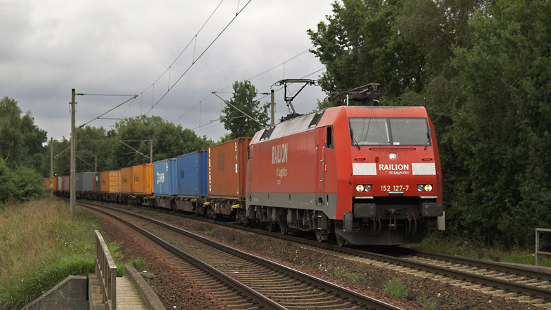 einem Containerzug aus dem Hamburger Hafen rumpelte die 152 126-9 über