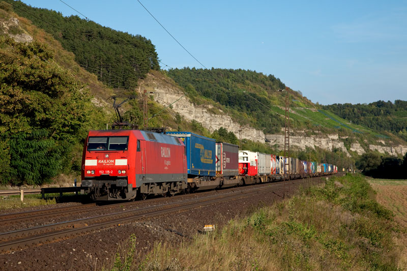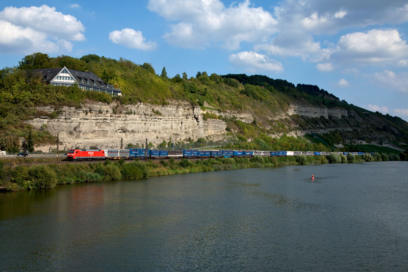 | Am Main längst rollte dieser paneuropa/terratrans-Zug mit der 152 120-2 in Richtung Norden. Retzbach-Zellingen, 31. August 2011 |