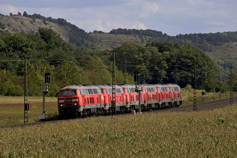 215 905-1 und ihre Schwesterlok bringen weitere zighundert Reisende in ihren