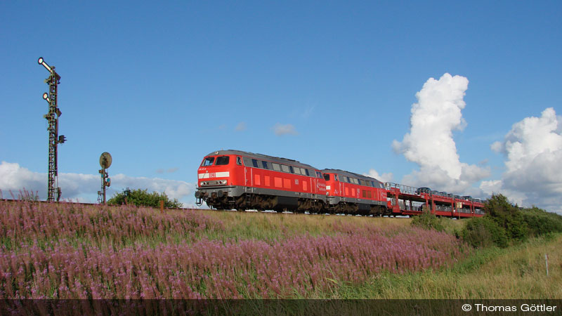 passieren die 215 911-9 und ihre Schwesterlok mit ihrem vollbesetzten SyltShuttle