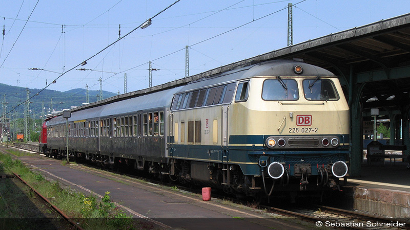 027-2 in den alten Kasseler Hauptbahnhof eingefahren. Am Zugschluß