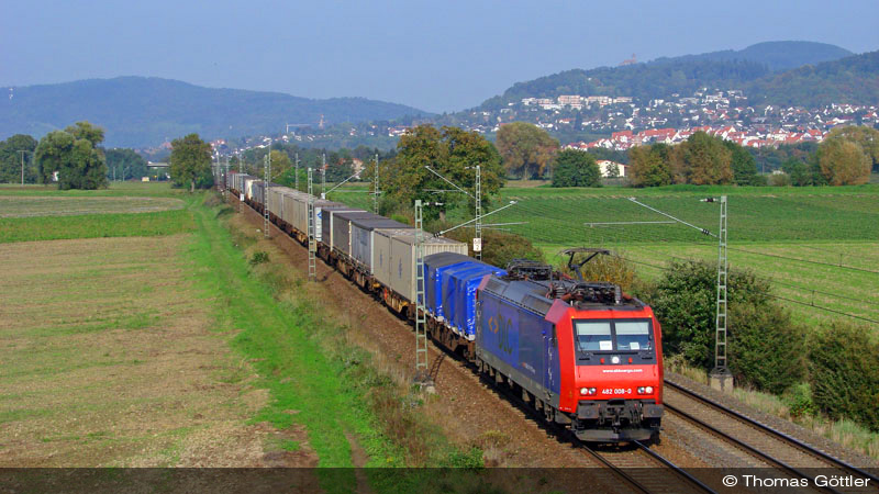 ist die 482 008-0 mit DLC-Aufkleber mit einem Containerzug unterwegs. 12.