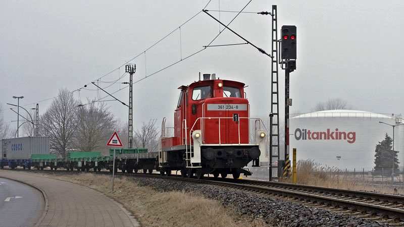 Die ELV-eigene V60 alias 361 234-8 kurbelte mit einem kurzen ITL-Containerzug gen Hohe Schaar.