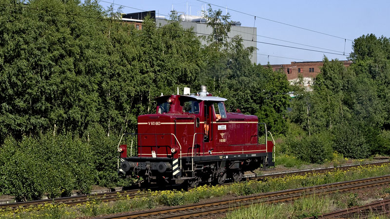 Dann kam dieses altrote Dreibein… V60 663 der ELV, was von Unterelbe-Seehafen nach Waltershof kurbelte!