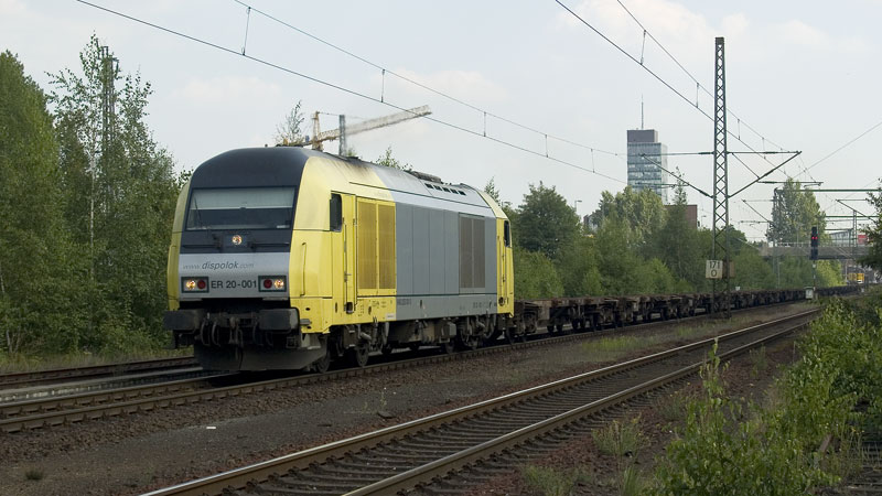die ER 20 der EVB – die 420 12 kam mit einem Containerzug. Ramelsloh, 27. Juli 2009 |