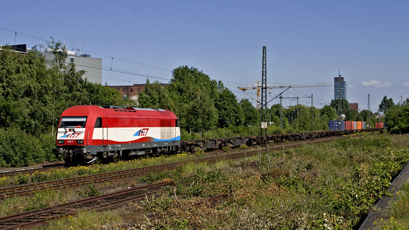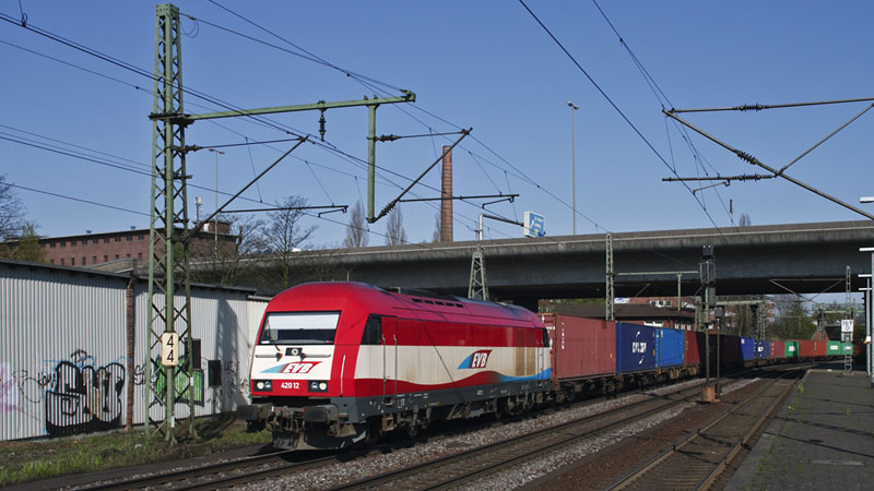 hab ich sie! Die 420 14 mit einem Containerzug aus dem Hamburger Hafen in
