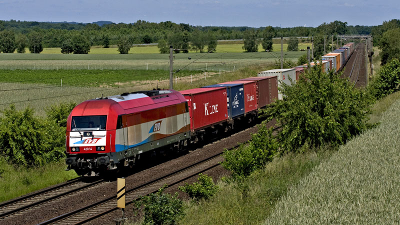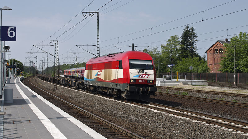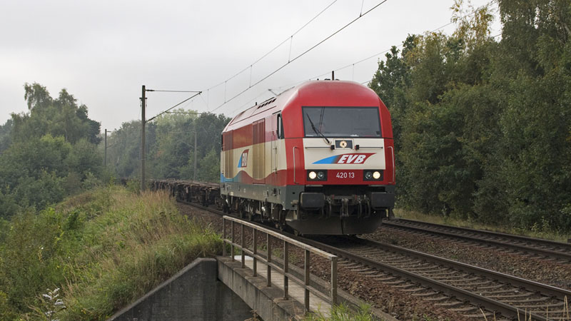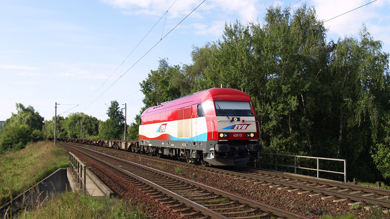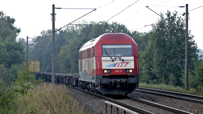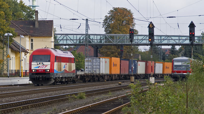 abbremsend röhrte die 420 13 der EVB mit ihren Containerzug auf