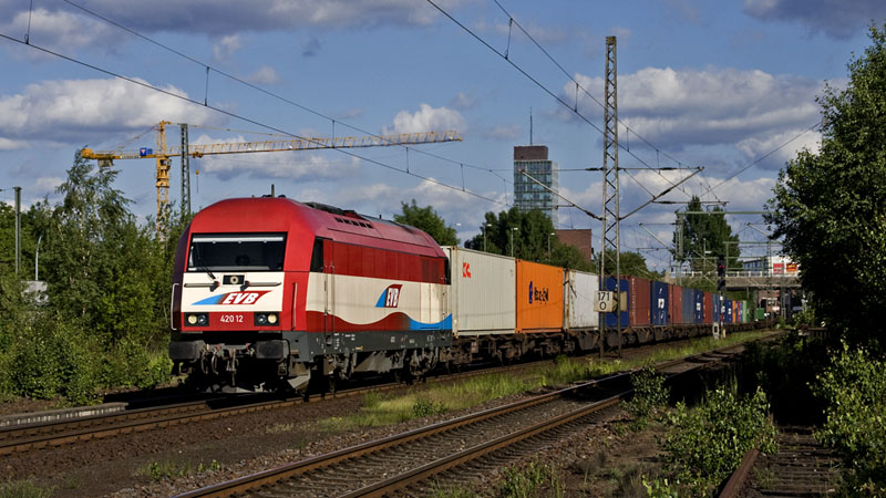 EuroRunner der EVB, die 420 12 brachte einen Containerzug aus dem Hafen