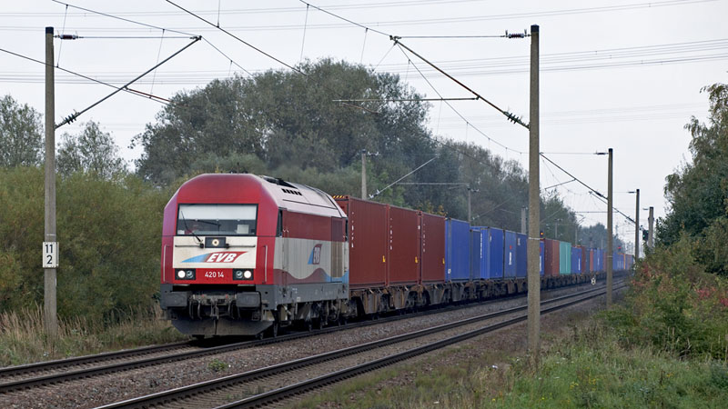 Auch die 420 13 der EVB schaute vorbei mit ihrem Containerzug. Hamburg-Moorburg, 12. Oktober 2010 |