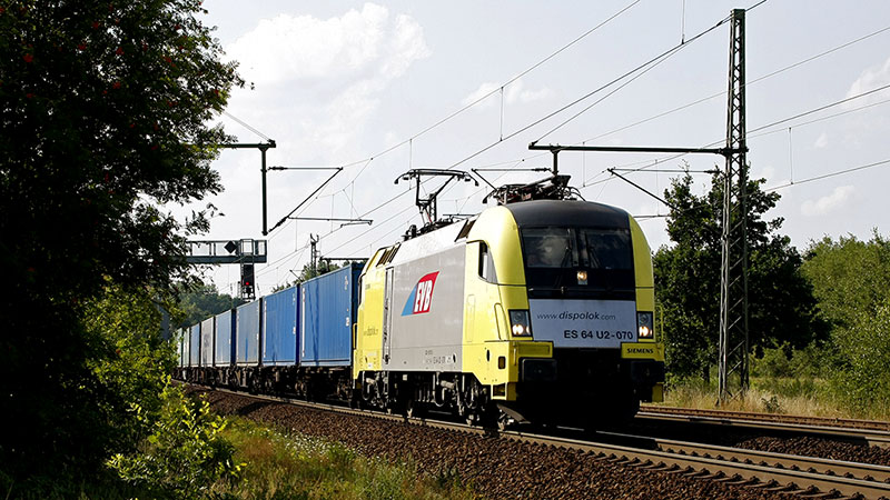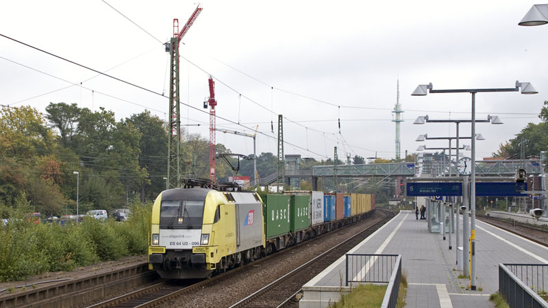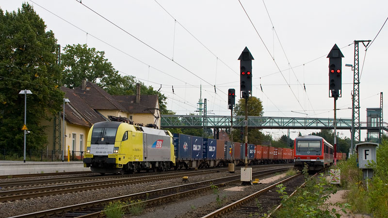 EVB-Containerzug mit der ES 64 U2-099 durfte die P-Gleise direkt von