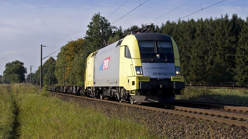 ehemalige ES 64 U2-038 fährt jetzt als ES 64 U2-070 der EVB! Hier