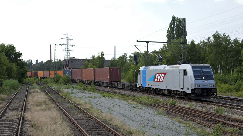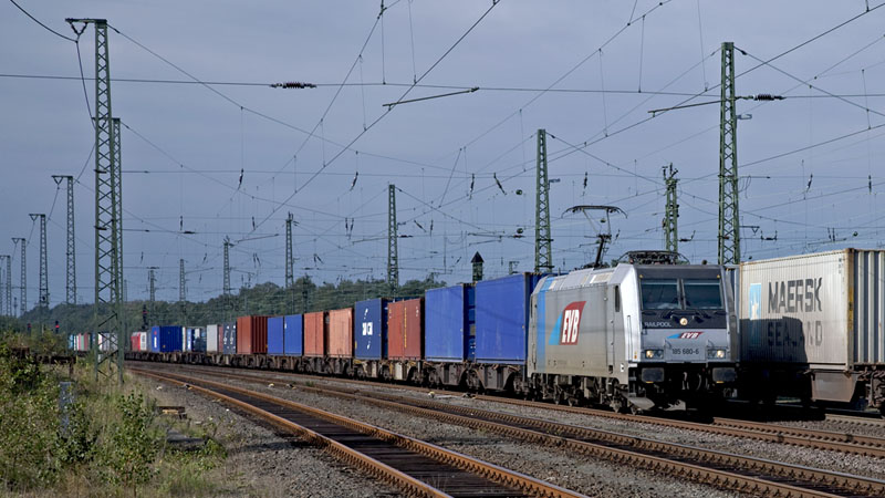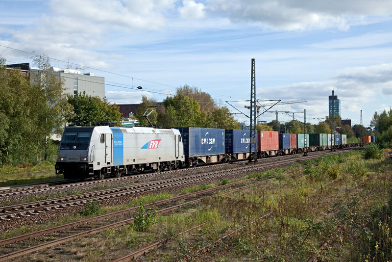 Auch die EVB aus dem "nassen Dreieck" kam, die 185 673-1 mit Containerzug. Halle (Saale), 23. September 2010 |