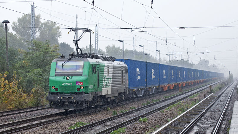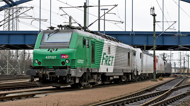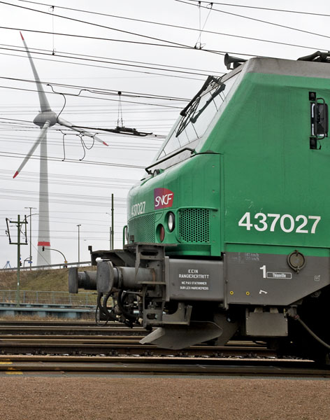Vorneweg die PRIMA I der SNCF-Güterverkehrssparte FRET – 437 027.