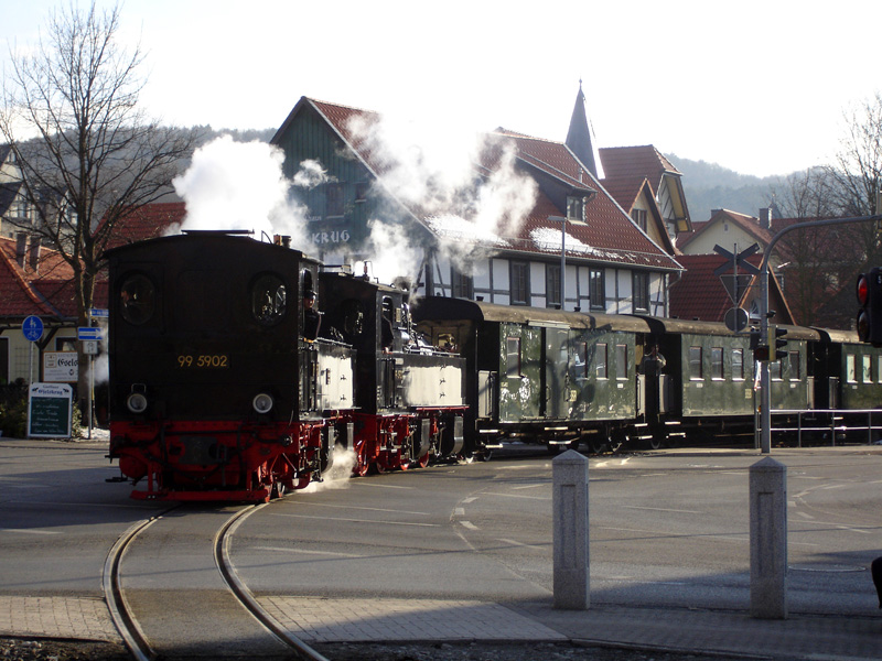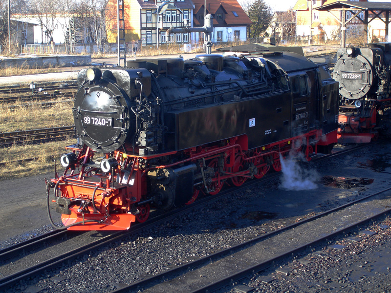 Wernigerode und Eisfelder Talmühle. Die 99 7234 wartet mit ihrem Brockenzug