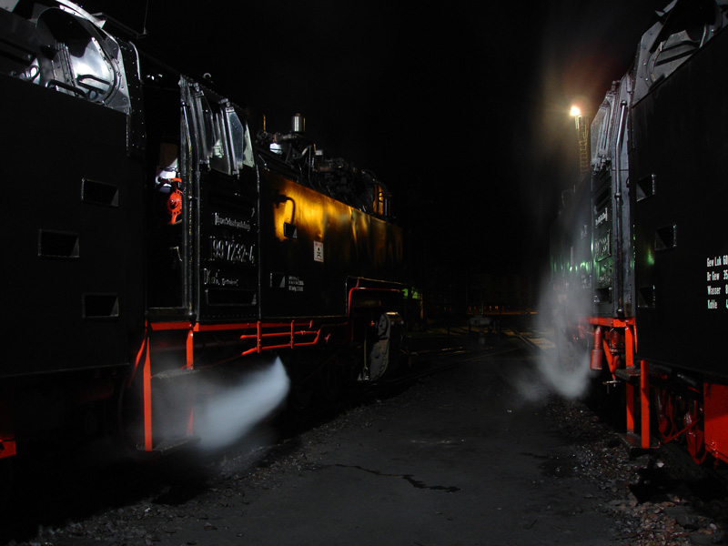 dem Lokschuppen des Bahnnbetriebswerkes Wernigerode Hbf stehen die beiden