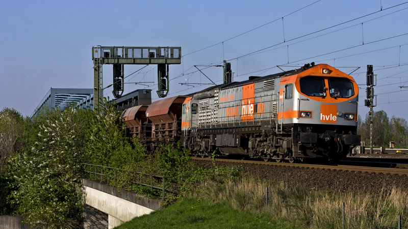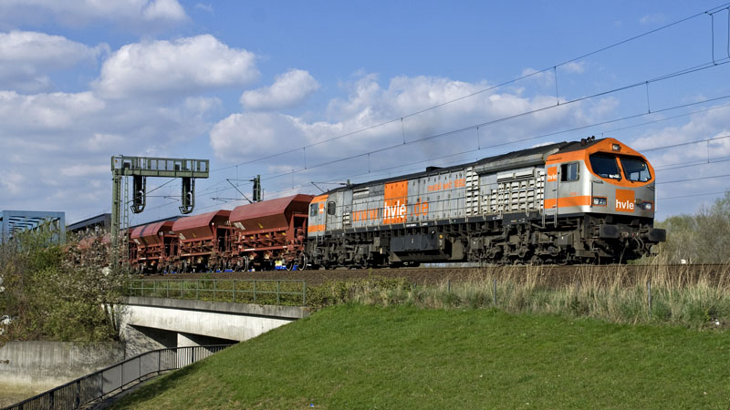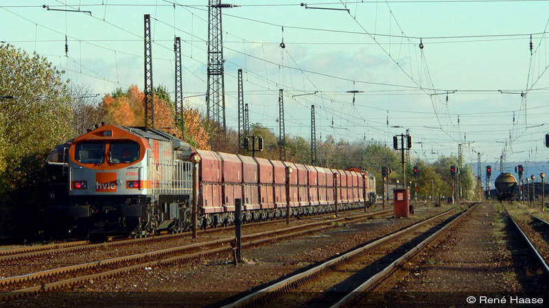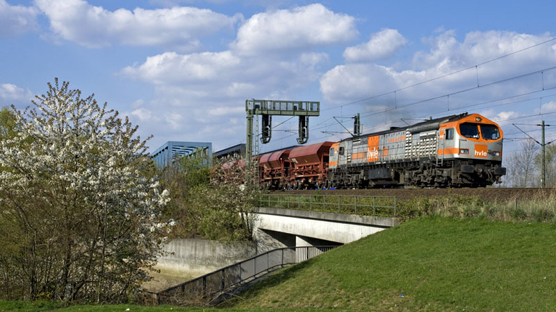 Mittlerweile ihren Logos der Mindener Kreisbahn beraubt, rollte 330.4 der HVLE mit dem Baustoffbomber gen Süden.
