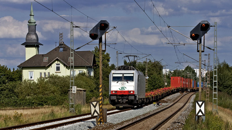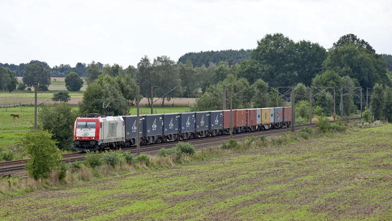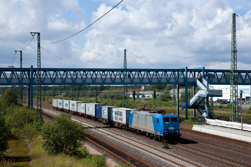 Dieser Containerzug mit der ITL E 186 138 mußte hier zur Seite. Radbruch, 10. Juli 2010 |
