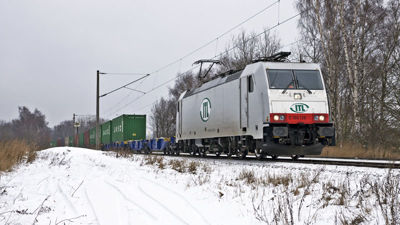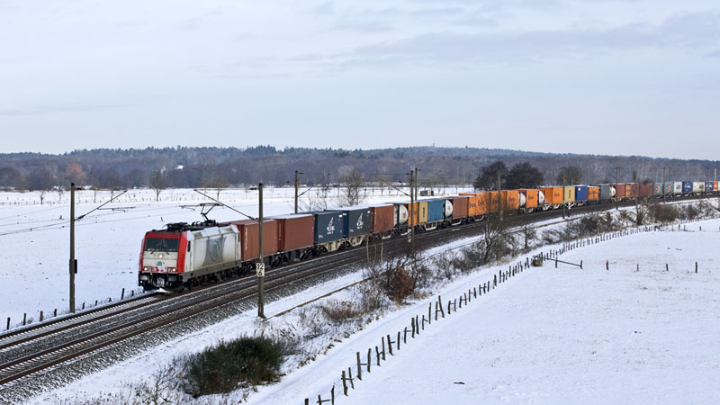 Ihr folgte dann der Containerzug mit der E 186 138 von ITL. Radbruch, 13. Februar 2010 |