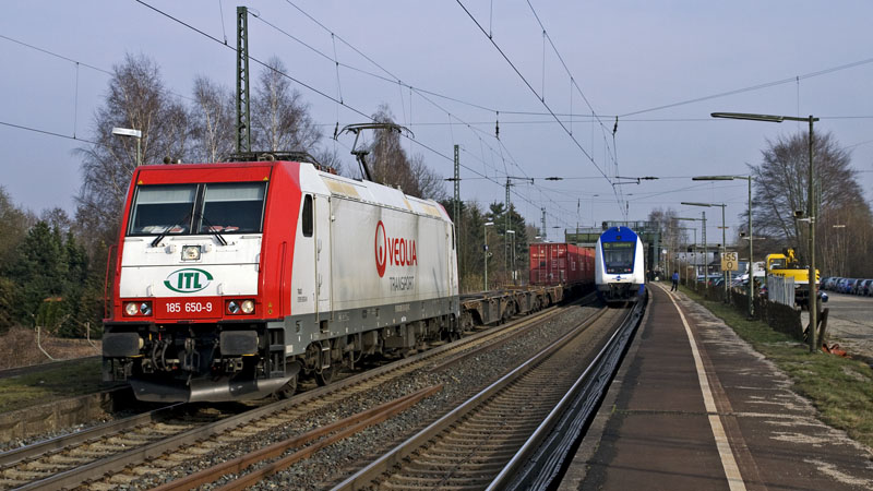 Die für die ITL fahrende 185 650-9 passierte den haltenden MEr nach Lüneburg. Ashausen, 24. März 2010 |