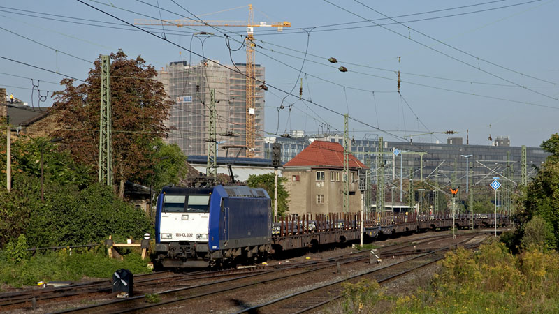 Wieder ohne ITL-Logos war die 185-CL 002 vor einem Stahlzug im Einsatz. Halle (Saale), 23. September 2010 |