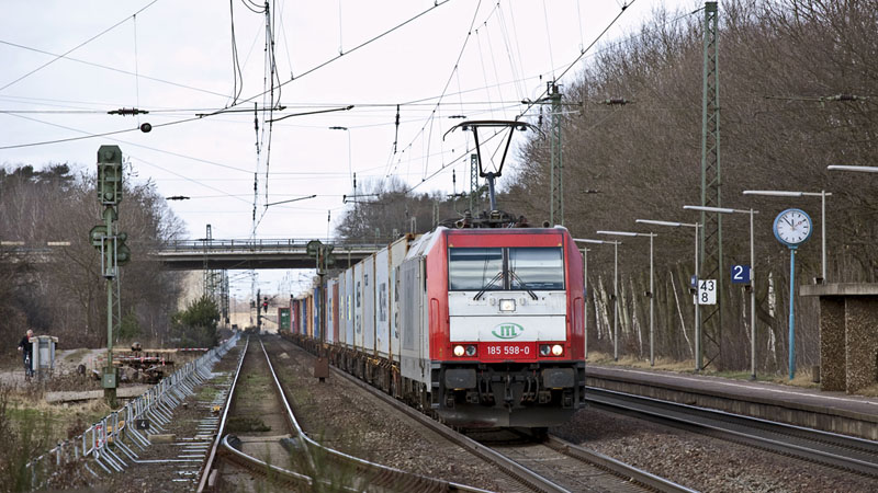 Einen Containerzug aus dem Hafen hatte die ITL 185 598-0 am Haken. Ramelsloh, 10. Dezember 2010 |